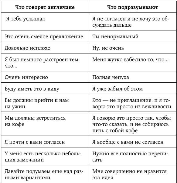 Сами англичане немного смеются над собой и даже придумали табличку, что все эти экивоки означают:
