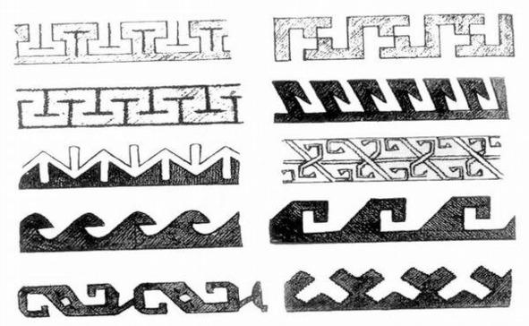 В науке существует мнение о том, что геометрический орнамент был перенесен на керамику из мягких материалов.
