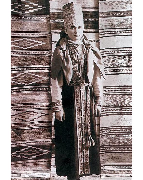 Соглашаясь с этим, мы можем полагать, что, вероятно, такие же орнаменты были обязательны и для одежды, во всяком случае, для одежды, выполняющей обрядово-обереговые функции. Мы можем предположить, что уже на порубежье неолита и энеолита, отмеченного ещё более ярким расцветом геометрического орнамента в Восточной и Юго-Восточной Европе, одежда украшалась тканым орнаментом. Это тем более вероятно, так как «ко второй половине 3 т. д. н. э. относится массовое распространение прясел, т.е. интенсивное развитие прядения, отмеченное не только для Восточной Европы, особенно для трипольского круга, но также для Малой Азии». Мы, естественно, можем только приблизительно представить себе как выглядели ткани, из которых выполнялась одежда людей энеолита, но что касается ромбо-меандрового узора в его различных модификациях, то его развитие и трансформации в это время очень хорошо иллюстрируют керамические изделия самой яркой культуры энеолита Восточной и Юго-Восточной Европы — Триполья-Кукутени. Б. А. Рыбаков отмечает, что в этой культуре: «Ромбо-меандровый орнамент встречается на посуде (особенно на ритуальных, щедро украшенных сосудах), на глиняных антропоморфных фигурках тоже, несомненно, ритуальных, на глиняных тронах богинь и жриц». В. Н. Даниленко, говоря о том, что еще в раннем неолите на территориях, занятых в последствии Трипольской культурой, почти безраздельно господствуют меандровые композиции, приходит к выводу о субстратном характере меандрового орнамента посуды Триполья и его глубокой архаичности, которая еще более подчеркивается наличием многочисленных позитивно-негативных композиций.