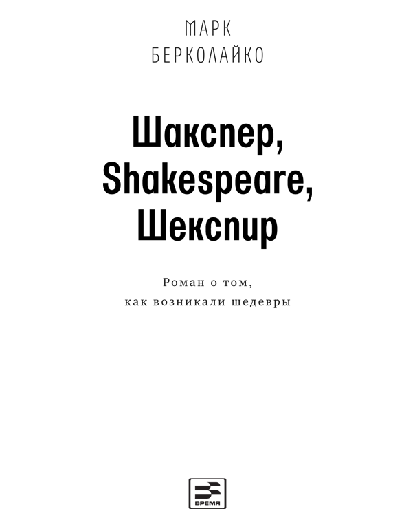 Шакспер, Shakespeare, Шекспир : Роман о том, как возникали шедевры / Марк Зиновьевич Берколайко. — М. : Время, 2018. — (Серия «Самое время!»).