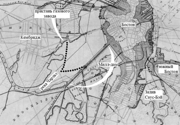 Рабочие газового завода в городе Кембридже, штат Массачусетс, утром 6 ноября 1872 г. столкнулись с досадной неприятностью, мешавшей их работе. Газовый завод, как можно понять из названия, занимался выработкой т.н. "свечного газа", использовавшегося для освещения домов и улиц как самого Кембриджа, так и других городов в районе залива Массачусетс - Бостона, Чарлстауна, Челси. Газ вырабатывался из угля, доставлявшегося по реке Чарльз, для его приёма завод располагал собственной пристанью.