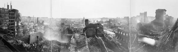На протяжении последующих 12-15 часов огонь охватил территорию в 25 гектаров плотной городской застройки. По официальной статистике, пожар уничтожил 776 зданий и нанёс чудовищный урон местному бизнесу и городскому хозяйству. Точные убытки вряд ли возможно было установить, считается, что стоимость личного имущества, уничтоженного огнём, достигала 60 млн.$, а городского - 13,5 млн.$. На пожаре погибло 13 человек, чья личность была установлена, но имелся ряд неопознанных трупов, поэтому число жертв пожара обычно определяется в 20 человек.