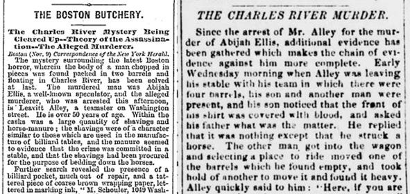 Особых подозрений Левитт Элли не вызвал, никто из полицейских в те минуты и не думал, что этот человек или его дом может иметь какое-то отношение к убийству. Ханнеман-стрит, на которой находилось домовладение Элли, была удалена от залива Саус-бэй приблизительно на полкилометра, в то время, как расстояние до реки Чарльз было намного больше [около 1,6—1,7 км]. Если местом преступления явилась Ханнеман-стрит, то убийце следовало бы выбрасывать бочки с трупом именно в залив Саус-бэй — такой выбор представлялся логичнее во всех отношениях.