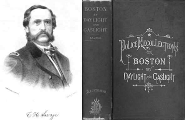 Но Эдвард Сэвэдж интересен не только этими славными страницами своего прошлого. Дело в том, что он был не только полицейским, но и писателем. В 1865 году он издал свою первую книгу, и в последующие 19 лет последовала целая серия публикаций из истории Бостона и правоохранительных органов Массачусетса. Он стал автором воистину эпических работ, которые можно здесь упомянуть, например: 2-хтомная "Хронологическая история бостонской стражи и полиции с 1631 по 1865 годы" ("A Chronological history of the Boston watch and police from 1631 to 1865"), "Бостон при дневном свете и газовом освещении" ("Boston by Daylight and Gaslight"), "Воспоминаниями бостонского полицейского" ("Recollections of a Boston Police Officer"), "Бостонские события: краткое изложение более 5000 событий, произошедших в Бостоне с 1630 по 1880 год за период в 250 лет вместе с другими интересными событиями, систематизированными в алфавитном порядке" ("Boston events: a brief mention and the date of more than 5,000 events that transpired in Boston from 1630 to 1880, covering a period of 250 years together with other occurrences of interest, arranged in alphabetical order") и некоторые другие.