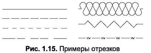 Отрезок — это один из самых простых типов объектов, определяемый несколькими параметрами: координатами начала и конца, толщиной (весом) и стилем вычерчивания. Для построения отрезков используется команда Line или кнопка