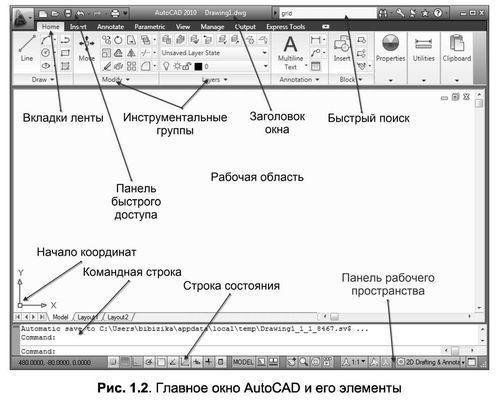 Данная глава знакомит с основными понятиями и концепцией AutoCAD. Приводится описание интерфейса программы, различных по сложности объектов, для построения которых предназначены индивидуальные инструменты, а также раскрывается и на примерах демонстрируется принцип использования команд AutoCAD.