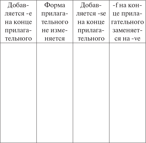 4. Разделите прилагательные, пропущенные в предыдущем предложении, по способу образования женского рода.