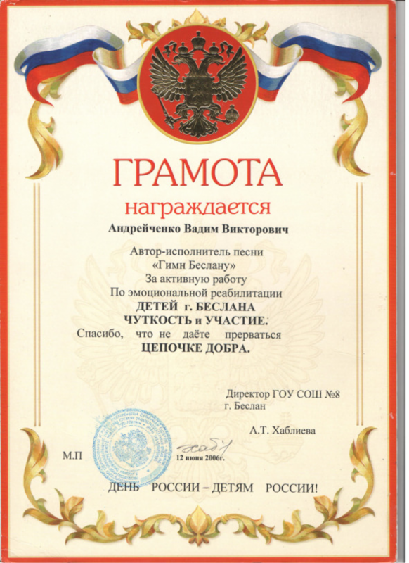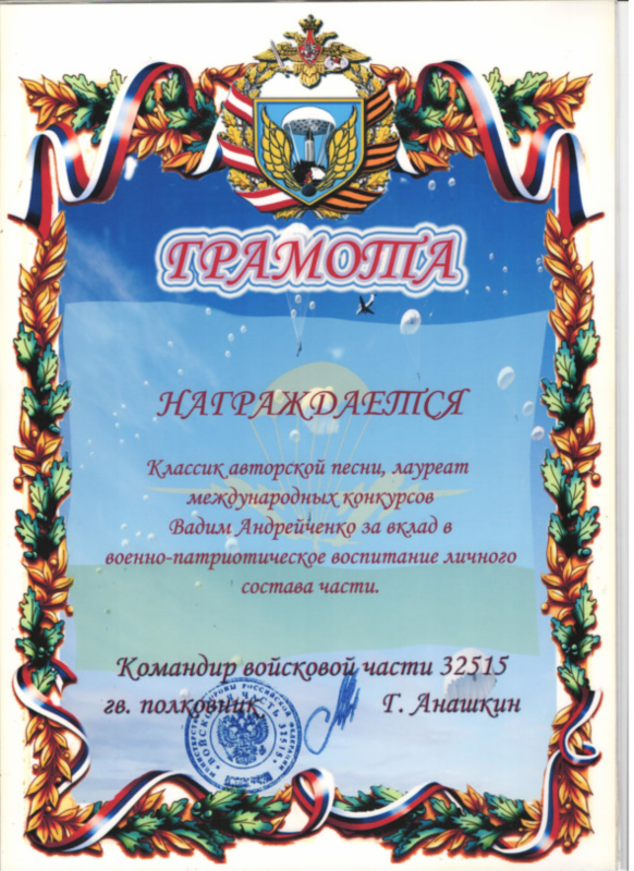 Слова: Татьяны Унру, Вадима Андрейченко.
