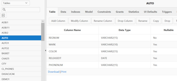 4. Как в APEX посмотреть структуру заданной таблицы?
