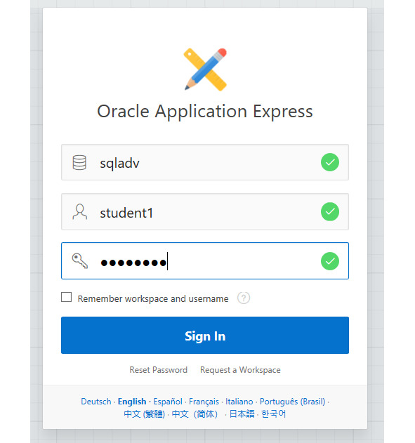 Шаг 3. Подготовка к работе. Процесс обучения. Описание интерфейса ORACLE APEX