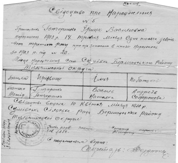Жил привычной жизнью обычного сельского жителя. В нашей семье никогда не произносилась фамилия Гончаренко. Дед Гончарук, слышали неоднократно, но Гончаренко никогда.