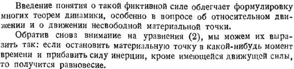 «Введение понятия о такой фиктивной силе облегчает формулировку многих теорем динамики, особенно в вопросе об относительном движении и о движении несвободной материальной точки».