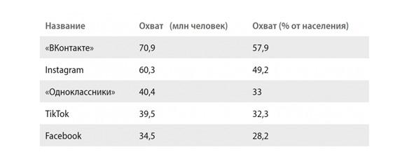Социальная сеть (от англ. social networks) — это онлайн платформа, позволяющая зарегистрированным на ней пользователям размещать личную информацию, вступать в коммуникацию с другими пользователями, устанавливая социальные связи. По данным Mediascope[3] на июль 2021 лидирующей социальной сетью по охвату человек в России являлась «ВКонтакте», на втором месте — Instagram[4].