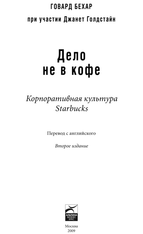 Дело не в кофе: Корпоративная культура Starbucks / Говард Бехар при участии Джанет Голдстайн; Пер. с англ. — 2-е изд. — М.: Альпина Бизнес Букс, 2009.
