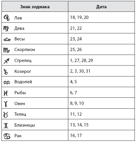 Прохождение Луны через знаки зодиака