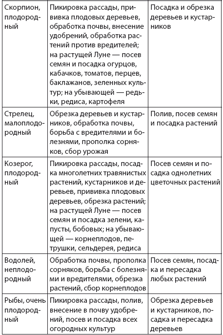При планировании работ в саду и огороде обязательно учитывайте, через какой знак зодиака проходит Луна. Например, Рыбы, Рак и Скорпион считаются самыми плодородными знаками. Когда Луна находится в них, можно проводить любые работы по посеву семян, пересадке и размножению растений. Близнецы, Лев и Водолей, наоборот, самые неплодородные знаки, поэтому в эти периоды лучше переносить работы по обработке почвы, обрезке растений, борьбе с сорняками и вредителями.