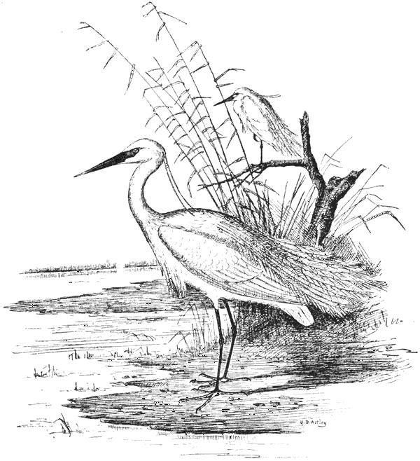 Now, I must tell you that there are two different kinds of White Egrets, with these beautiful feathers that the women with the frozen hearts wear. One is much larger than the other, and is called the Great White Egret. He is quite a big bird, larger even than our common heron—and you know what a big bird he is. The other one, which is called the Small White Egret, is not more than half the size of the great one, but his feathers are the most beautiful, so that, though he has not nearly so many of them, he is worth nearly twice as much money. That means, of course, that the servants of the wicked little demon, who shoot him and sell his feathers, can get nearly twice as much money for them as they can for the feathers of the other one. So, of course, they like shooting him best, but they are very glad to shoot the other one—the Great White Egret—too, for even his feathers are worth a good deal. Now, if the wicked little demon had not frozen the hearts of women, they would never want to wear feathers that cost the lives of the poor birds to whom they belong—because, you know, women are, really, so kind. Then, of course, those feathers that are so beautiful would not be worth anything (as it is called), and so men would not shoot the White Egrets, because they would not be able to sell their feathers. I am afraid they would have no better reason for not doing so than that, because men, you know, are not kind and pitiful—as women are, if only their hearts are not frozen. But, at any rate, the White Egrets would be left alive.