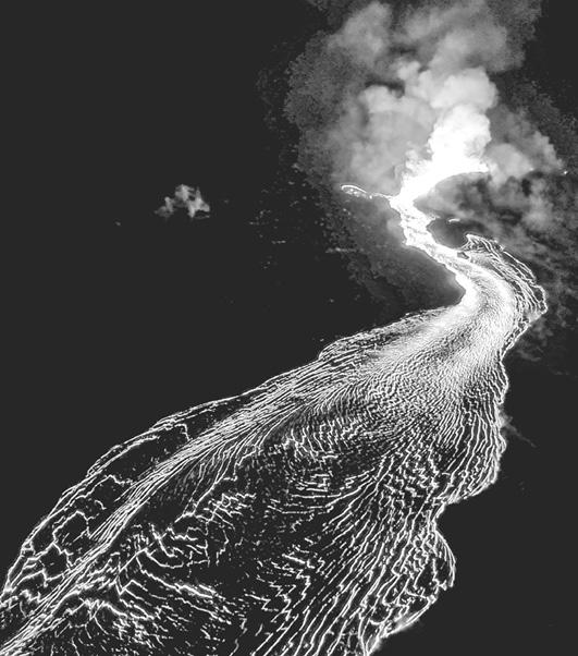 Стовалл заворожило не только само извержение. Потоки лавы все увеличивались, воздух над ними шипел от жара. Большие массы теплого, влажного воздуха поднимались вверх и в конце концов достигали высоты, на которой остывали. В результате влага конденсировалась вокруг пепла и выпала в виде огромных клубящихся призраков, называемых пирокумулятивными облаками. Сверкали молнии, гремел гром, а кислотный дождь покрывал землю, уничтожая все растения, которые еще не сожгла лава. Если присмотреться к горизонту, можно было увидеть, что извержение меняет погодные условия, задолго до того, как покажется сама лава, ползущая по земле внизу, — зрелище, как говорит Стовалл, необыкновенную природу которого словами передать невозможно.