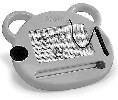 Казалось бы, все, что касается игрушек для маленьких детей, уже изобретено и ничего принципиально нового создать невозможно. Однако это не так. Возьмем, например, игры, развивающие способность писать, а также создавать простые рисунки. Техническое задание таково: рисунок должен быть четким, легко стираться, а сама игрушка должна быть безопасной, причем – что немаловажно – безопасной именно для детей. В продаже можно встретить такую конструкцию. В герметичной коробке под пластмассовым прозрачным экраном помещен тонкий алюминиевый порошок (алюминиевая пудра). При встряхивании экран электризуется, и на него налипает слой порошка. С помощью помещенного в коробку штифта и двухкоординатного механизма, управляемого двумя ручками, можно нарисовать довольно сложные фигуры, «процарапывая» слой алюминия, то есть удаляя порошок острием штифта. Встряхивание коробки приводит игрушку в исходное состояние. К ее очевидным недостаткам относится невозможность оторвать штифт от экрана, то есть прервать линию (поэтому буквы и цифры нарисовать практически нельзя), а также сложность создания кривых: каждая ручка по отдельности позволяет проводить линию либо вправо-влево, либо вверх-вниз. Правда, последнее обстоятельство в какой-то мере может служить и достоинством игрушки, которая хорошо развивает координацию движения. Другой вариант подобной «рисовалки» еще проще. твердый темный лист покрыт гибкой матовой полимерной пленкой. Если с помощью заостренной палочки – стила – провести на пленке черту, то она прилипнет к подложке, и черта станет видна – останется темный след. Так можно нарисовать на пленке все, что угодно. Если же с помощью тонкого стержня, расположенного между пленкой и подложкой, отделить их друг от друга, все изображения исчезнут, и можно начинать с начала.