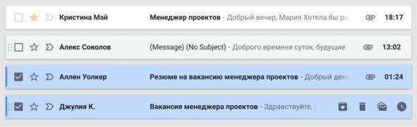 Однажды я устраивалась на работу через рекрутинговое агентство. Прошла интервью, сделала тест и через неделю вышла на работу. Через пару дней я увидела на столе у начальника пачку резюме моих конкурентов. Тогда они присылались по факсу и были бумажными. Я осторожно спросила: «А почему выбрали меня?» Начальник усмехнулся и сказал, что к моему резюме мой рекрутер написал сопроводительное письмо, поэтому меня сразу и позвали на интервью. А с другими резюме ему лень разбираться. То письмо состояло из одной фразы, но его хватило.