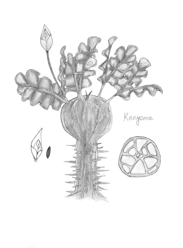 Капуста. Та, что удалось привезти с Земли, вместе с остальными растениями, к сожалению, не смогла прижиться на местной почве. Все семена ушли в пустую — растения погибли, даже не дав хотя бы один урожай. Но оказалось, что похожее растение уже давно имелось на этой планете, только выглядело непривычно. Новая капуста высотой аж до трёх метров, это и не удивительно, ведь по сути это круглая бочка с водой, на толстом стволе, усыпанном острыми шипами. Нашли её далеко отсюда, каким-то чудом урвали с Нетронутых земель. Там очень опасно и не только потому, что в большинстве мест очень жаркий, засушливый климат. Новая капуста словно на первую половину кактус, дальше скорей походит на кольраби, однако листья большие, цвет сине-голубой, местами фиолетовый. Листья большие и тяжёлые, всегда вырастают больше метра в длину, легко ломаются. Как раз подошла пора срезать нижние части, а то потом они просто огрубеют и завянут. Эту работу поручили Герману, в такой жаркий день только тень от широких листьев спасает того, кто упорно не хочет снять свою тёмную водолазку и одеться полегче.
