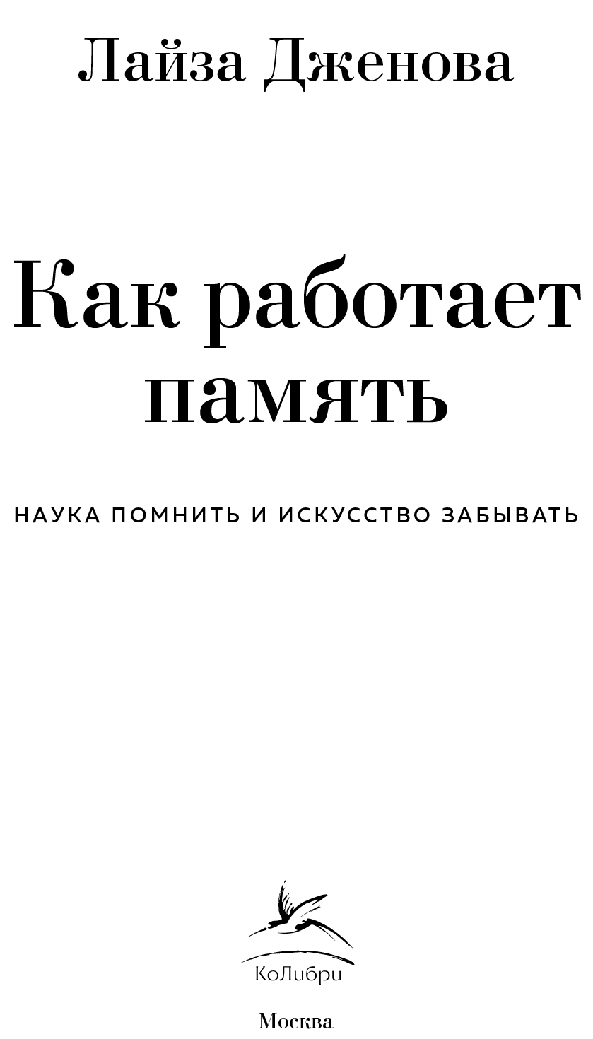 Как работает память: Наука помнить и искусство забывать / Лайза Дженова ; [пер. с англ. Ю.Я. Гольдберга]. — М. : КоЛибри, Азбука-Аттикус, 2022.