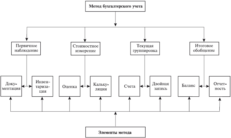Метод бухгалтерского учета – совокупность способов и приемов, с помощью которых постигается предмет (объекты) бухгалтерского учета, т. е. элементов метода бухгалтерского учета. На рис. 1.1 представлены элементы метода бухгалтерского учета.