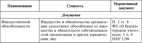 Выполнение допущений и требований, приведенных в таблице, – одно из условий соблюдения российского законодательства, так как они являются составной частью системы нормативного регулирования бухгалтерского учета.