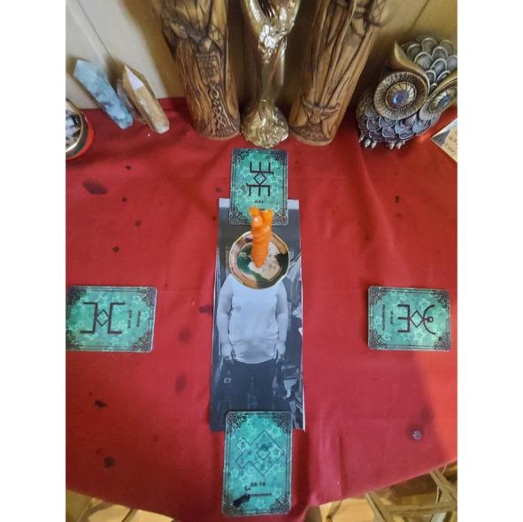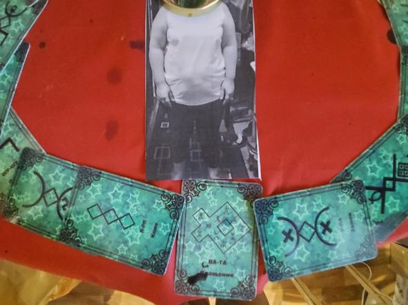Я рекомендую для этих целей брать руническую мандалу Земля, размещать ее внизу структуры ритуала, как некую почву и подушку безопасности. На нее размещать фото человека и затем уже руническую мандалу воронку.