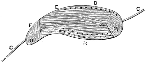 Fig. 22 — Starling — Showing Position of First Incision and the Commencement of the Removal of the Skin *