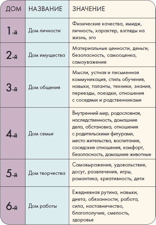 Дома – это 12 зон вашей карты рождения, которые отражают важные части жизни: самосознание, любовь, деньги, карьера, семья, цели и здоровье. Вот лишь несколько для примера: