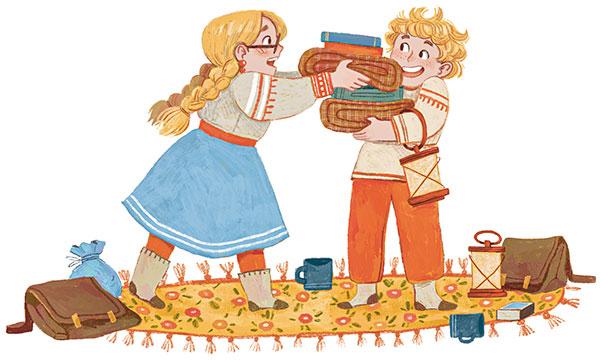 Потом они собрали всё, что может понадобиться в путешествии: еду, кружки, спички, фонарики, два пледа, и, главное, оба взяли по блокноту и по коробке цветных карандашей, чтобы сделать портреты всех будущих гостей и потом подарить их, когда те прибудут на торжество. Варрэ и Вийри неплохо рисовали. Великими художниками их, конечно, не назовёшь, но среди маленького народца они были известны своими рисунками, которые в солнечные дни висели на ветках «выставочного» дерева в центре долины Ильмайок. Варрэ чаще всего рисовала деревья, сопки и облака, а Вийри любил создавать портреты животных и соседей.