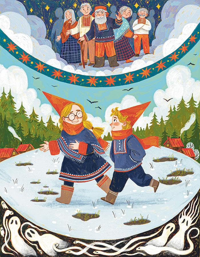 Если вы вдруг забыли (а может, и вовсе этого не знали), то вот что: маленький северный народец верит в существование трёх миров. Подземный мир — мрачный и холодный, там живут чудовища и бесформенные тени, там находят приют после жизни все злые и жадные существа, будь они крохотными обитателями лесов и долин, как северный народец, или жителями многолюдных городов с высокими домами, стоящими у шумных дорог. Средний мир — тот, в котором живём все мы: счастливые и не очень, только что родившиеся и седые старики, богатые и бедные, честные и хитрые… И есть ещё один — Верхний мир добрых предков, где каждого в свой срок ждут его пра-, и прапра-, и прапрапрародители. Именно там можно сходить на рыбалку с прадедушкой или послушать истории прапрабабушки. Именно туда почти год назад и ушёл знаменитый Сяхтар, покинув уютный дом у ручья Ильмайок.