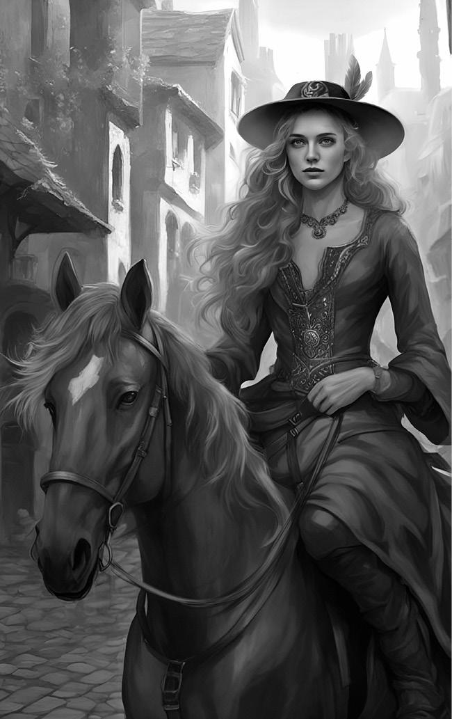 Совсем близко, в той стороне, куда он направлялся, сидела на красивом гнедом коне молодая дворянка. Никуда не ехала, восседала, сложив на луке седла руки в замшевых перчатках с расшитыми золотом раструбами. Вроде бы самая обычная дворянка, каким при верховой езде политесно носить мужское платье. Однако очаровательна она была, как Дальмигетта25 — точеное личико, от которого сладко замирало сердце, огромные синие глазищи, золотые волосы каскадом падают на плечи (вообще-то старомодная прическа, но ей страшно идет), аксамитный синий кафтан в меру тесен, так что сразу видно: фигурка у нее словно у статуй Пероза... Что она тут делает? Лавок поблизости нет — во всяком случае, тех, что особенно привлекательны для женщин; дорогу никто и ничто не загораживает. И все равно остановила коня и сидит в седле, глядя на проезжающих с каким-то непонятным выражением на свежем личике (о таких деревенские говорят: «Как ключевой водой умывается...»).