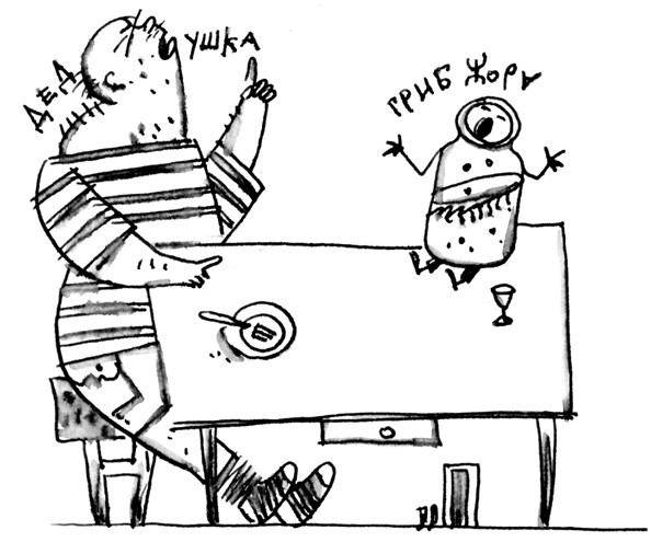 На кухне дедушка пел песню Геннадию Васильевичу. Геннадий Васильевич — это чайный гриб редкой китайской породы. Он любит серьезную музыку или старинные песни, которые дедушка называет «комсомольские». «Welсome to the hotel California…» или «Show me the way to the next whiskey bar…» Кратко дедушка зовет свой гриб Жорой. Почему Геннадия — Жорой? Непонятно. Дедушка строгий, с нами почти не разговаривает, всё с Жорой да с Жорой. «Один ты у меня и есть, Жора», — говорит он, а гриб в ответ пускает пузырьки, как будто понимает. Нам дедушка не разрешает называть гриб Жорой. Только по имени-отчеству — Геннадий Васильевич.