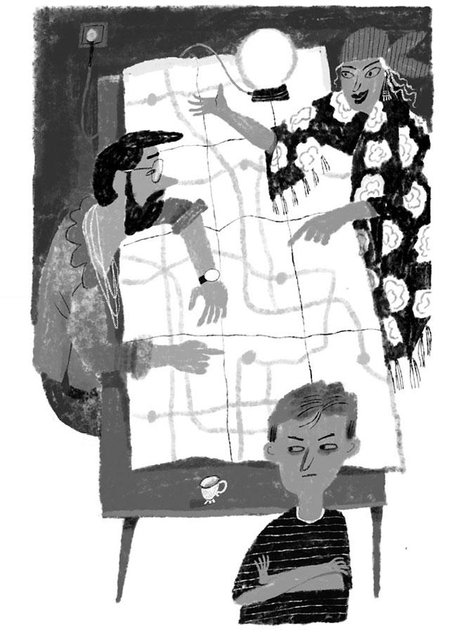 Он принёс из комнаты старые автомобильные карты, которые мама давно просила выбросить, и стал водить по ним пальцами, бормоча себе под нос: