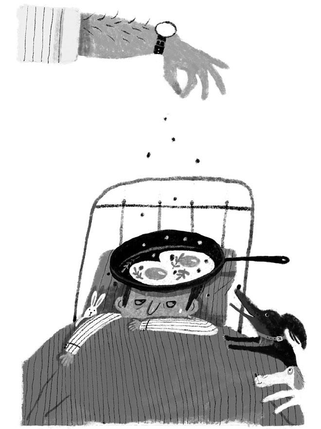 — Слушай, — тихо сказал папа, заглянув к нему в комнату, — ты не против, если я на тебе яичницу пожарю к завтраку? А то на кухне бабушка плиту заняла, кашу варит, а я эту кашу уже видеть не могу.