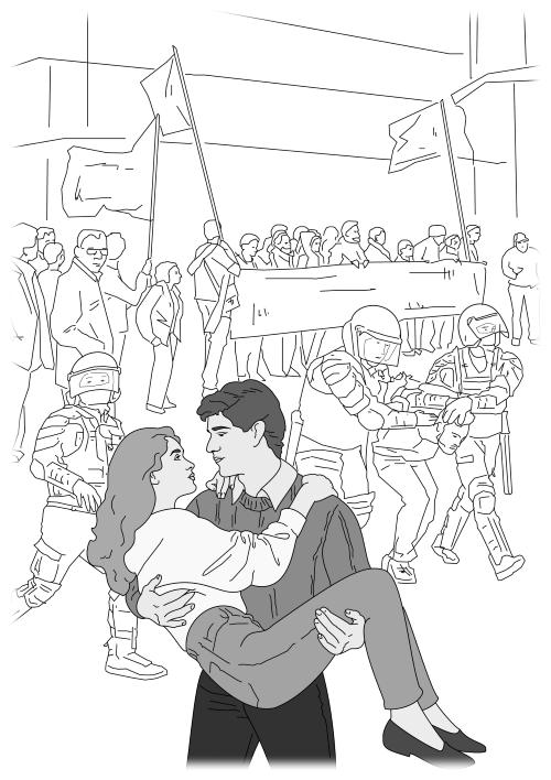 Почему я это осознал только сейчас? Почему просветление в моей одурманенной башке наступило только сейчас, когда я стою на митинге в первом ряду среди разъяренных людей, а передо мной стоит гвардеец в каске, с дубинкой, в бронежилете? Он стоит спокойно – кто-то из толпы плюнул в него, кто-то кинул яйцо, а он стоит и не двигается, и я вижу только его глаза, которые умоляют меня: «Не надо, парень. Не делай этого. Я на службе, и какой бы ты ни был чудесный человек, брат, муж и сын, я буду действовать по инструкции!»