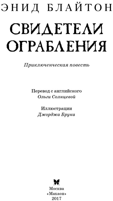 Свидетели ограбления : ˆ / Энид Блайтон ; пер. с англ. О. М. Солнцевой ; худож. Джордж Брук. – М. : Махаон, Азбука-Аттикус, 2017.