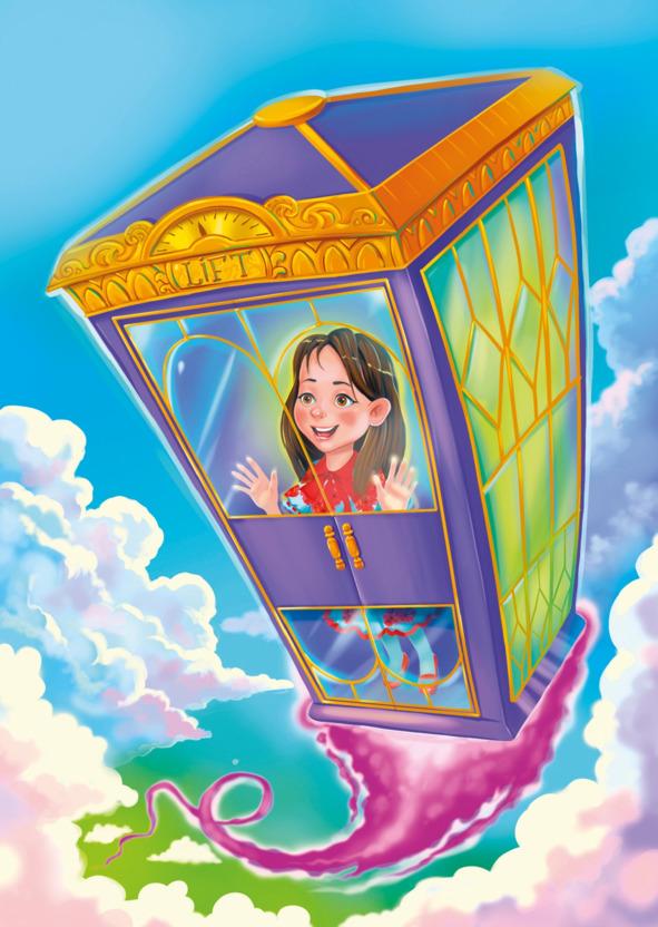 Доминика была настолько очарована этой красотой, что даже не заметила, как двери закрылись и лифт поехал вверх. Лифт двигался очень быстро, а сиреневый дым постепенно начал рассеиваться, просачиваясь через узкую щель между дверьми и полом. Насмотревшись на цветы, девочка повернулась к окну и, к своему удивлению, обнаружила там облака.