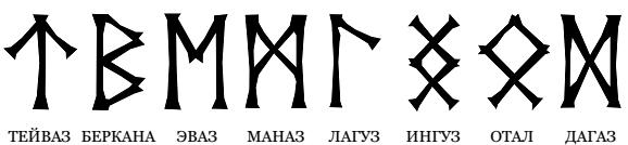 Возникают резонные вопросы: а как же Тюр или Тиу, чьим именем названа руна Тейваз? А Ингви или Фрейр, чье имя носит руна Ингуз? Я уже не спрашиваю про руну Ансуз, название которой переводится как «ас»[27].
