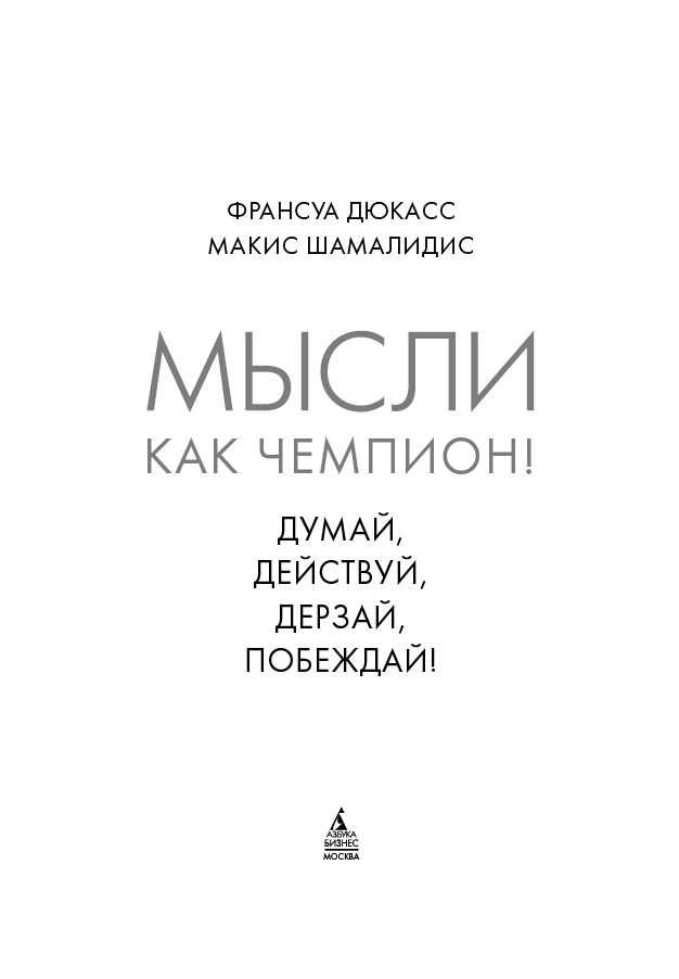 Мысли как чемпион! Думай, действуй, дерзай, побеждай! / Франсуа Дюкасс, Макис Шамалидис ; [пер. с фр. А.В. Пушкиной]. — М. : Азбука Бизнес, Азбука-Аттикус, 2024.