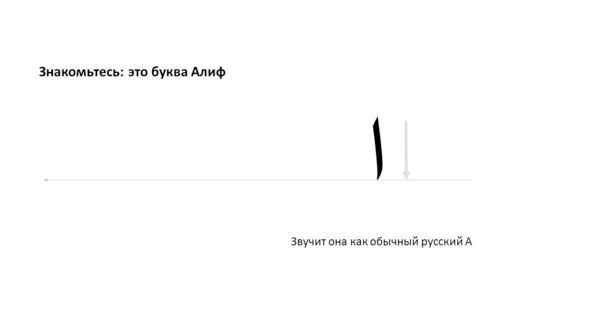 Итак, мы остановились на Алифе и поняли, что он обозначает на письме звук А.