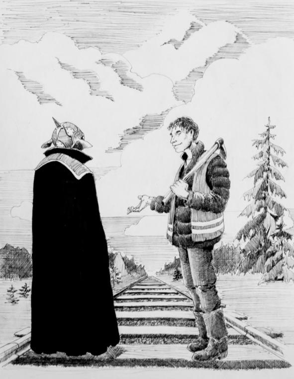— Иду я спокойно по перегону, никого не трогаю — декселем костыли дёргаю. Тут свет с небес и — бах!.. Стою я где-то, а вокруг эти. Инструмент забрали. Дали два шарика железных и говорят: «Удиви нас». У меня не получилось. — Мужик вздохнул. — Один потерял, второй сломал, — и снова показывает половинку на ладони.