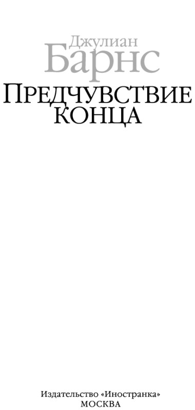 Предчувствие конца : роман / Джулиан Барнс ; пер. с англ. Е. Петровой. — М. : Иностранка, Азбука-Аттикус, 2017. (Большой роман).