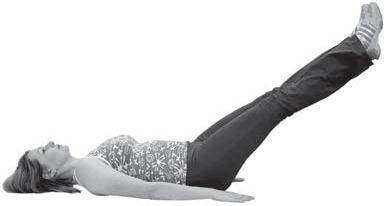 2. Исходное положение то же. Лопатки прижаты к полу, руки вдоль туловища. Поднимайте и опускайте прямые ноги, напрягая нижнюю часть мышц брюшного пресса (фото 2).