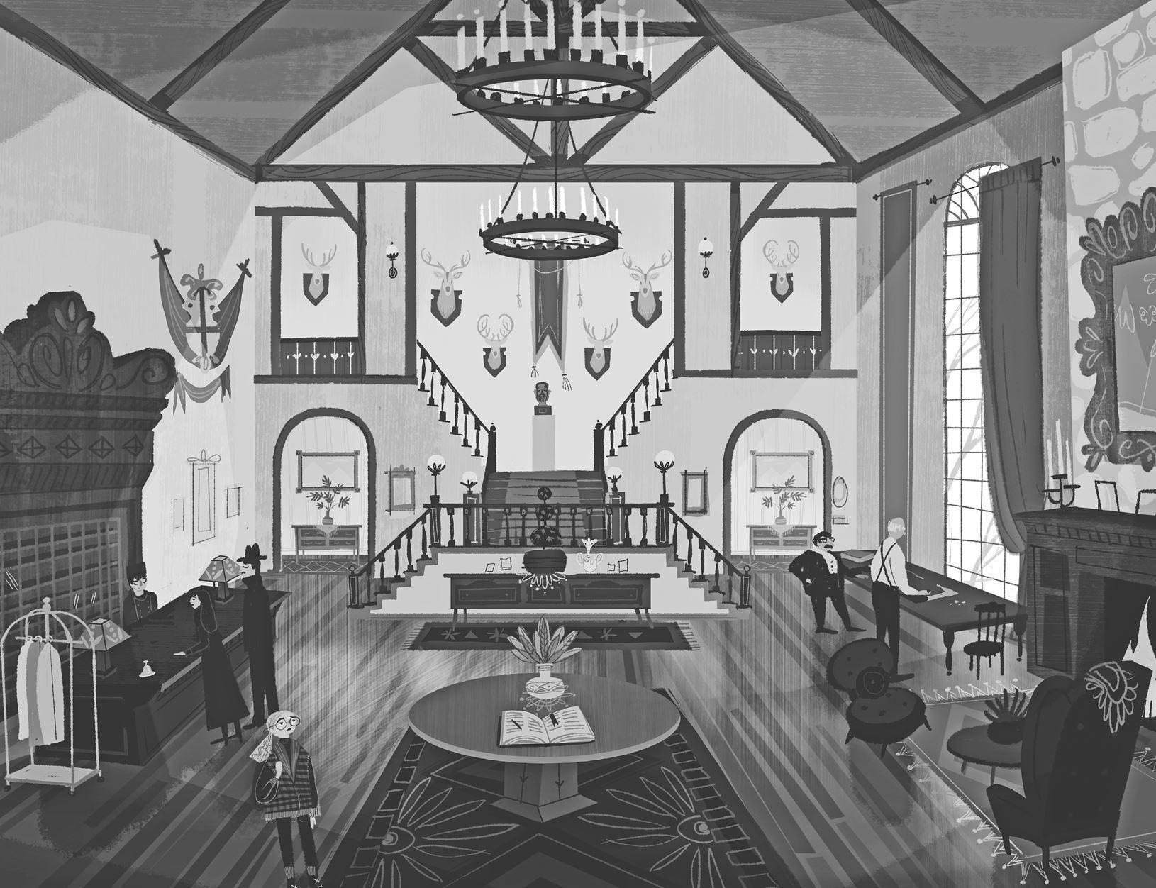 Двери словно приглашали скорее войти в них, посыльный казался очень любезным, а Элизабет так хотелось узнать, что будет дальше, что она не знала, что ещё ему сказать. Она огляделась. Вправо и влево уходили сводчатые проходы, через которые были видны смежные залы. Метрах в двадцати впереди лестница с серебряными поручнями вела вверх, к бронзовому бюсту на площадке следующего этажа. Шесть лосиных голов занимали всё пространство стены. В воздухе витал вкусный аромат чего-то сладкого – как-будто смешали и подожгли сахар, дым и воск.