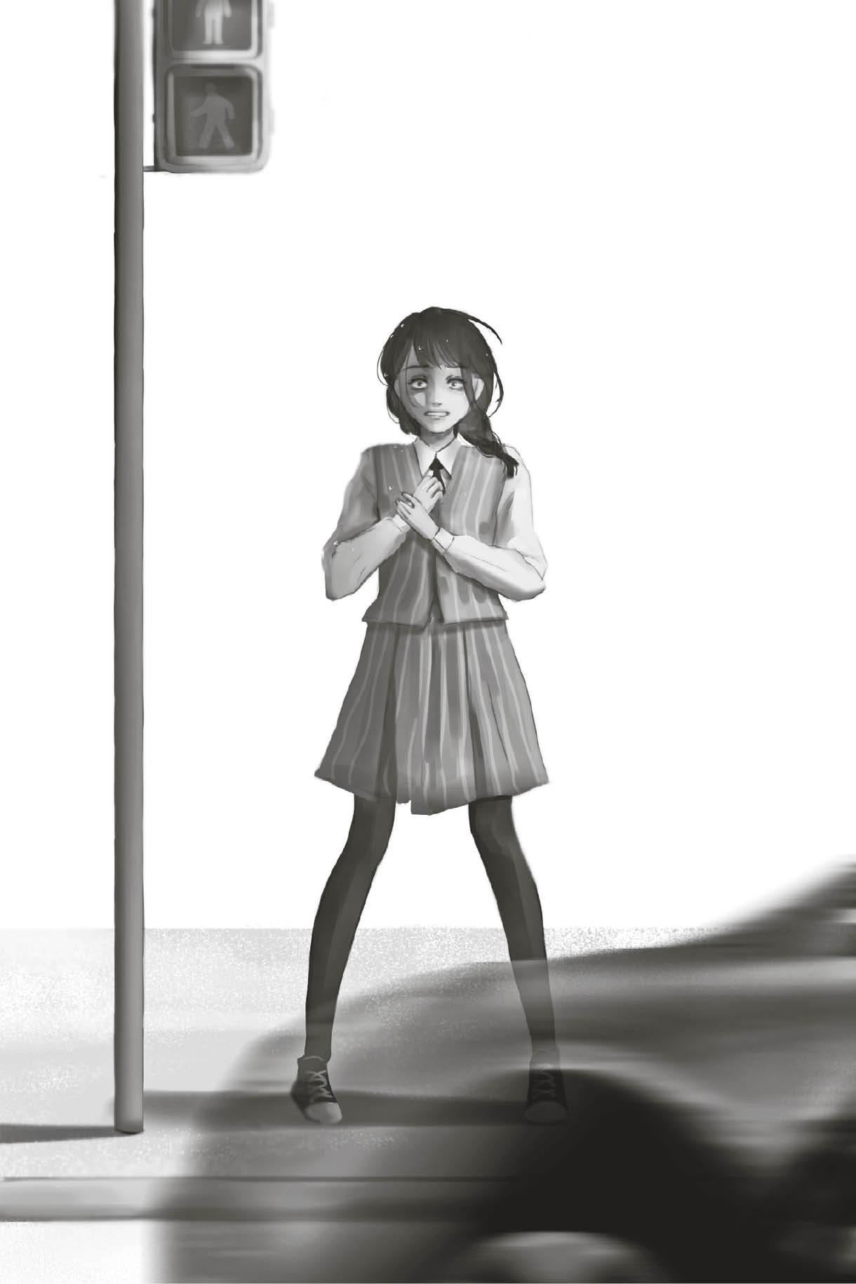 Школьники с зонтами и без пробегали мимо. Совон стояла и смотрела в одну точку, будто находясь в прострации, но вдруг ее взгляд упал на то, что было выведено крупными буквами на тротуаре перед пешеходным переходом, недалеко от главного входа в школу.