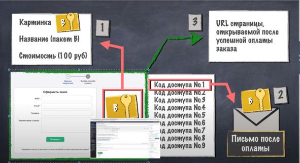 Покупателю на почту отправляются письма о покупке и как получить новый уровень доступа.
