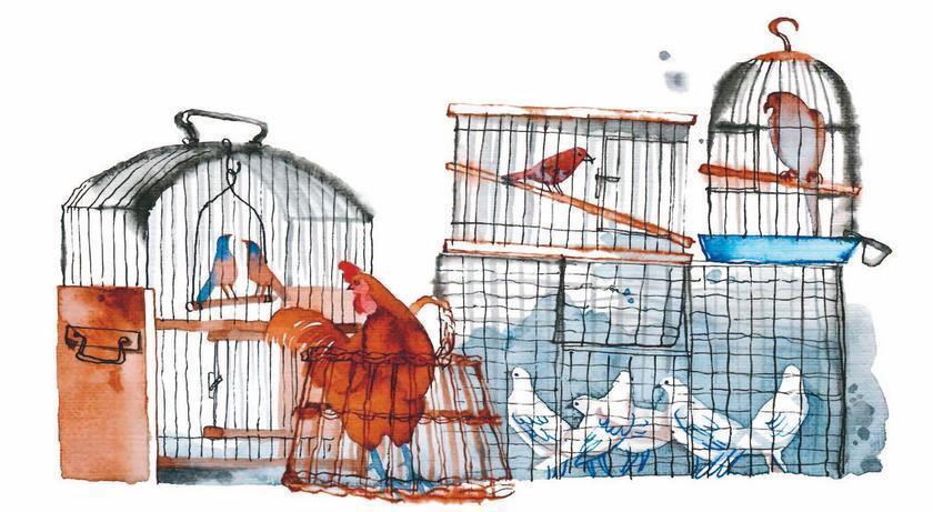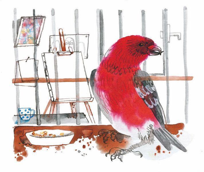 И характер у Капитана был весёлый. Целый день прыгал он по клетке, расшатывал клювом железные прутья или выламывал дверцу. Но больше всего он любил долбить еловые шишки.